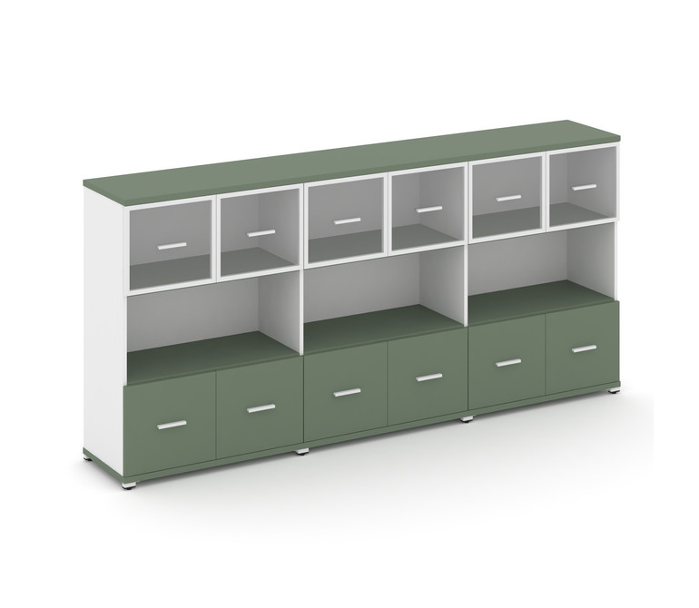 Concept Шкаф 3 широкие секции, 3 ниши CN.STS-335 RPW W Кобо/Белый Бриллиант/Металл Белый/Прозрачный