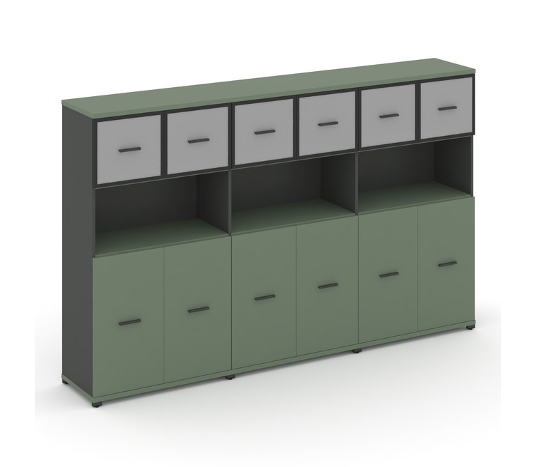 Concept Шкаф 3 широкие секции, 4 ниши CN.STS-435 RMB A Кобо/Антрацит/Металл Антрацит/Сатин 2500*420*