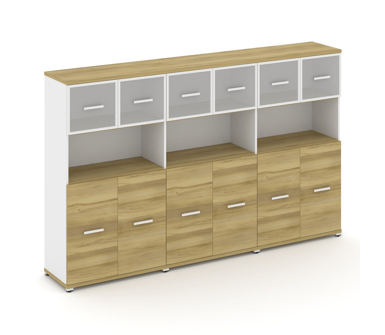 Concept Шкаф 3 широкие секции, 4 ниши CN.STS-435 RMW W Дуб Винченцо/Белый Бриллиант/Металл Белый/Сат