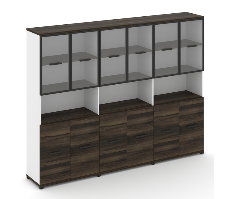 Concept Шкаф 3 широкие секции, 5 ниш CN.STS-533 RPB B Дуб Мали/Белый Бриллиант/Металл Черный/Прозрач