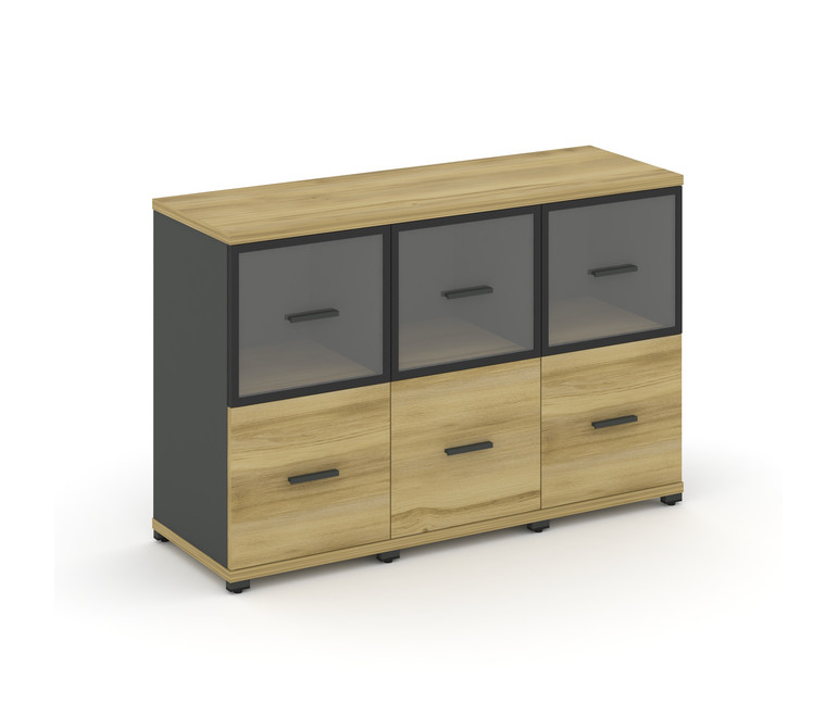 Concept Шкаф 3 узкие секции, 2 ниши CN.STU-232 RPB A Дуб Винченцо/Антрацит/Металл Антрацит/Прозрачны