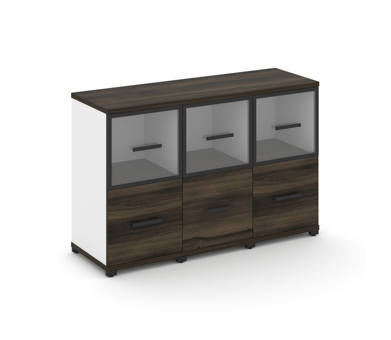 Concept Шкаф 3 узкие секции, 2 ниши CN.STU-232 RPB B Дуб Мали/Белый Бриллиант/Металл Черный/Прозрачн