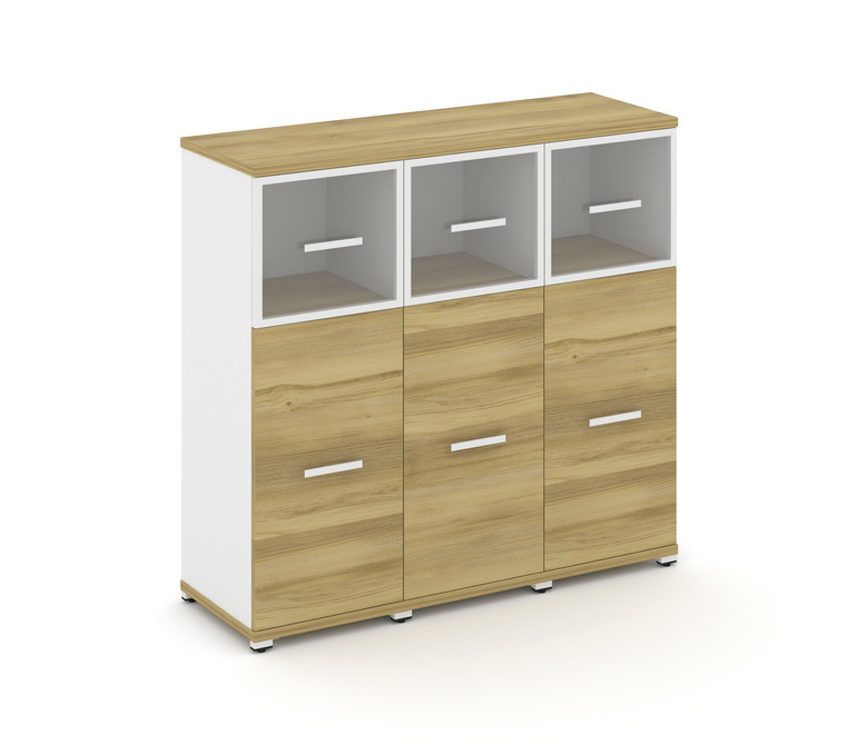 Concept Шкаф 3 узкие секции, 3 ниши CN.STU-334 RPW W Дуб Винченцо/Белый Бриллиант/Металл Белый/Прозр