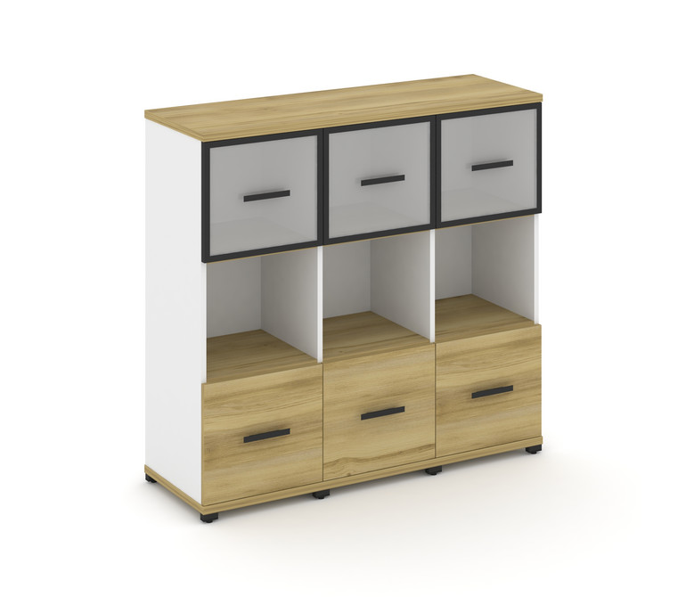 Concept Шкаф 3 узкие секции, 3 ниши CN.STU-335 RMB B Дуб Винченцо/Белый Бриллиант/Металл Черный/Сати