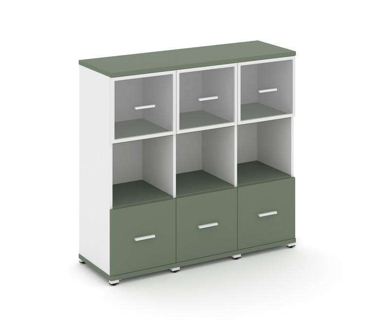 Concept Шкаф 3 узкие секции, 3 ниши CN.STU-335 RPW W Кобо/Белый Бриллиант/Металл Белый/Прозрачный 12