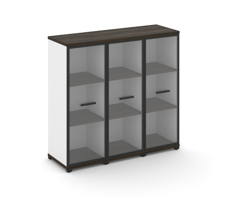 Concept Шкаф 3 узкие секции, 3 ниши CN.STU-336 RPB B Дуб Мали/Белый Бриллиант/Металл Черный/Прозрачн