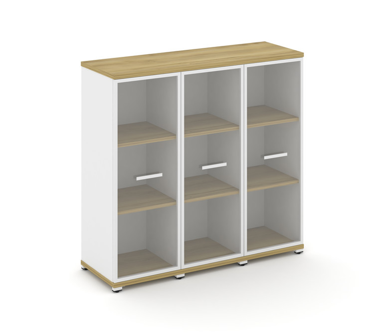 Concept Шкаф 3 узкие секции, 3 ниши CN.STU-336 RPW W Дуб Винченцо/Белый Бриллиант/Металл Белый/Прозр
