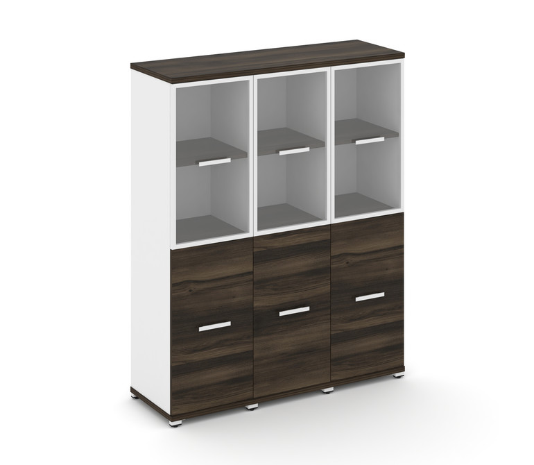 Concept Шкаф 3 узкие секции, 4 ниши CN.STU-432 RPW W Дуб Мали/Белый Бриллиант/Металл Белый/Прозрачны