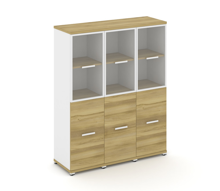 Concept Шкаф 3 узкие секции, 4 ниши CN.STU-432 RPW W Дуб Винченцо/Белый Бриллиант/Металл Белый/Прозр