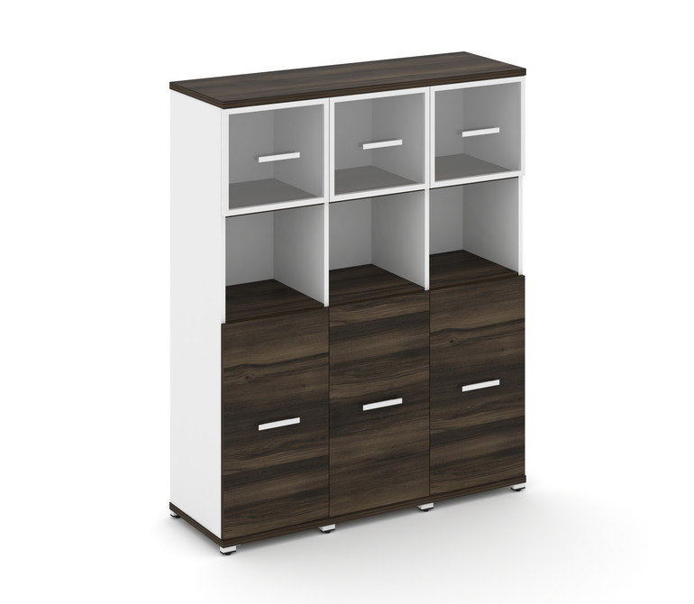 Concept Шкаф 3 узкие секции, 4 ниши CN.STU-435 RPW W Дуб Мали/Белый Бриллиант/Металл Белый/Прозрачны