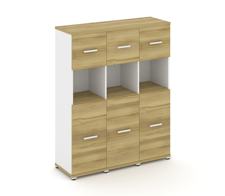 Concept Шкаф 3 узкие секции, 4 ниши CN.STU-435 W Дуб Винченцо/Белый Бриллиант/Металл Белый 1252*420*