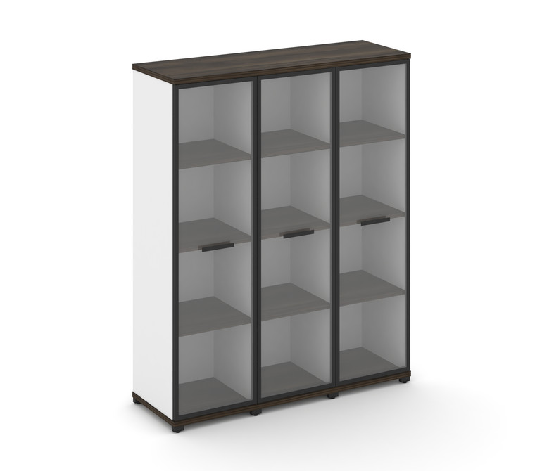 Concept Шкаф 3 узкие секции, 4 ниши CN.STU-436 RPB B Дуб Мали/Белый Бриллиант/Металл Черный/Прозрачн