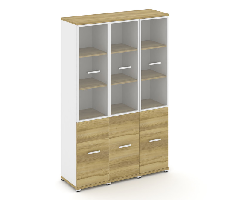 Concept Шкаф 3 узкие секции, 5 ниш CN.STU-532 RPW W Дуб Винченцо/Белый Бриллиант/Металл Белый/Прозра