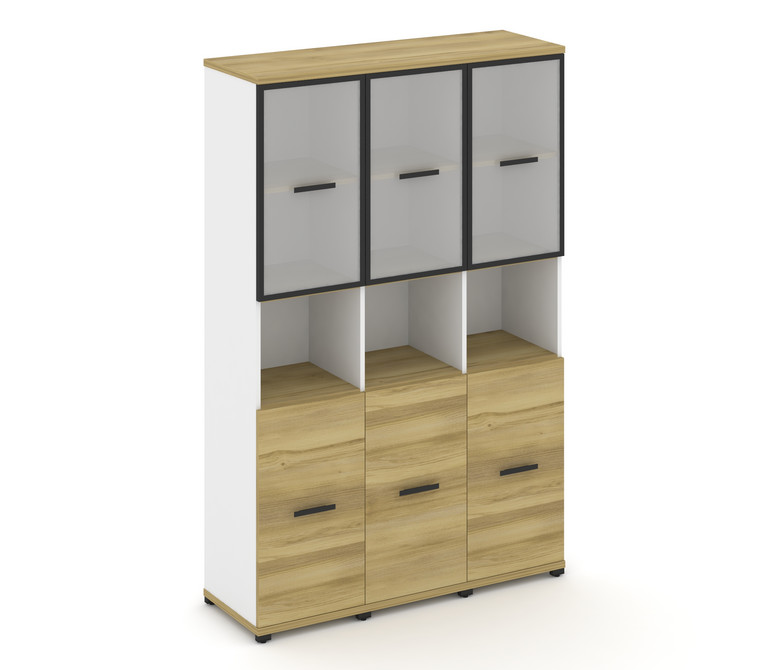 Concept Шкаф 3 узкие секции, 5 ниш CN.STU-533 RMB B Дуб Винченцо/Белый Бриллиант/Металл Черный/Сатин