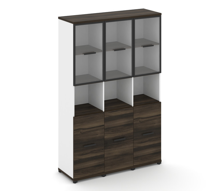 Concept Шкаф 3 узкие секции, 5 ниш CN.STU-533 RPB B Дуб Мали/Белый Бриллиант/Металл Черный/Прозрачны
