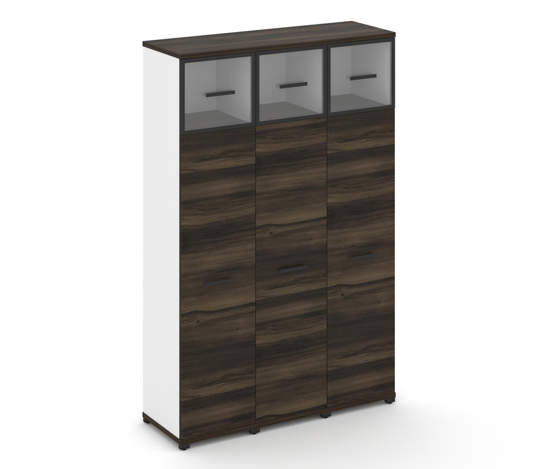 Concept Шкаф 3 узкие секции, 5 ниш CN.STU-537 RPB B Дуб Мали/Белый Бриллиант/Металл Черный/Прозрачны