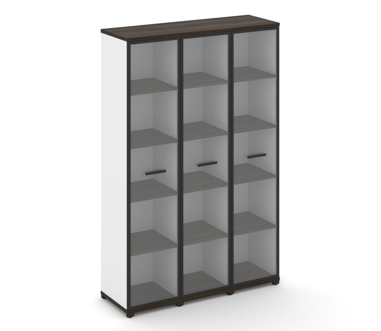 Concept Шкаф 3 узкие секции, 5 ниш CN.STU-538 RPB B Дуб Мали/Белый Бриллиант/Металл Черный/Прозрачны