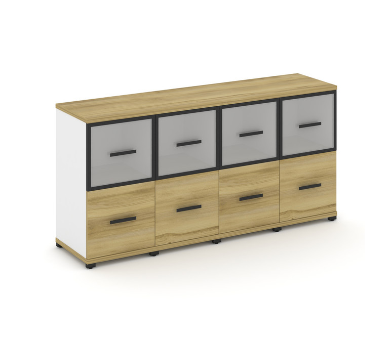 Concept Шкаф 4 узкие секции, 2 ниши CN.STU-242 RMB B Дуб Винченцо/Белый Бриллиант/Металл Черный/Сати