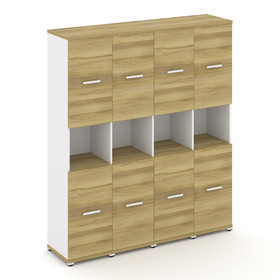Concept Шкаф 4 узкие секции, 2 ниши CN.STU-243 RPB B Дуб Мали/Белый Бриллиант/Металл Черный/Прозрачн