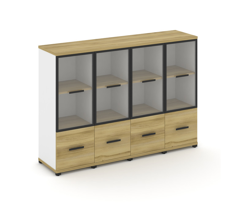 Concept Шкаф 4 узкие секции, 3 ниши CN.STU-342 RPB B Дуб Винченцо/Белый Бриллиант/Металл Черный/Проз