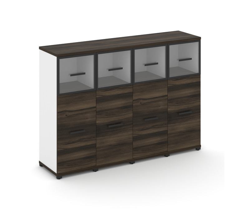 Concept Шкаф 4 узкие секции, 3 ниши CN.STU-344 RPB B Дуб Мали/Белый Бриллиант/Металл Черный/Прозрачн