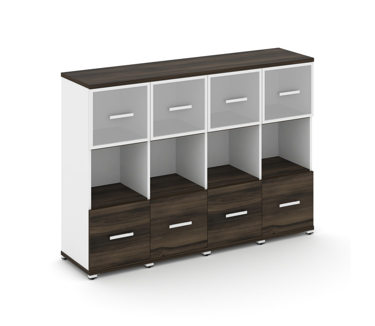 Concept Шкаф 4 узкие секции, 3 ниши CN.STU-345 RMW W Дуб Мали/Белый Бриллиант/Металл Белый/Сатин 166