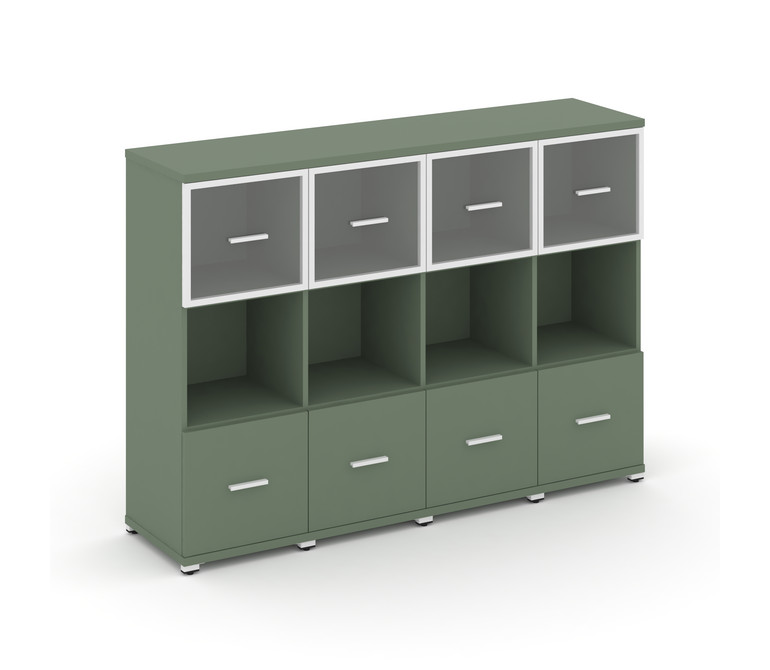 Concept Шкаф 4 узкие секции, 3 ниши CN.STU-345 RPW W Кобо/Металл Белый/Прозрачный 1668*420*1186