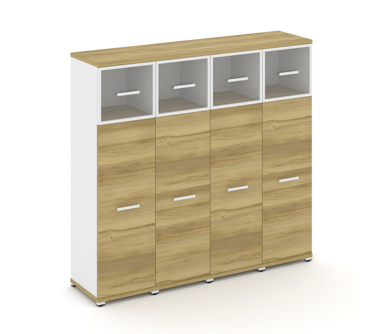 Concept Шкаф 4 узкие секции, 4 ниши CN.STU-444 RPW W Дуб Винченцо/Белый Бриллиант/Металл Белый/Прозр