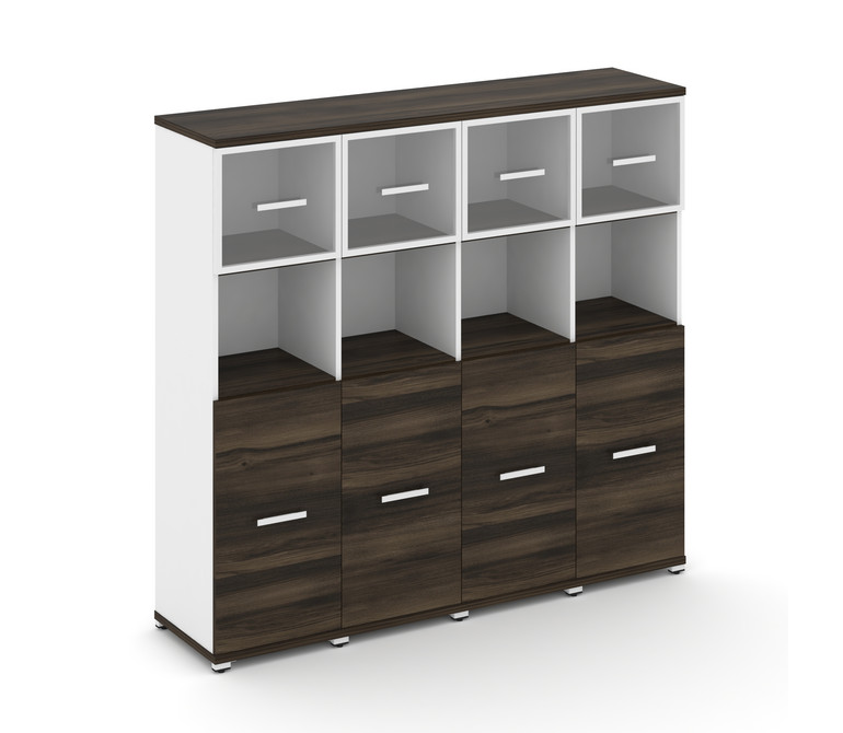 Concept Шкаф 4 узкие секции, 4 ниши CN.STU-445 RPW W Дуб Мали/Белый Бриллиант/Металл Белый/Прозрачны