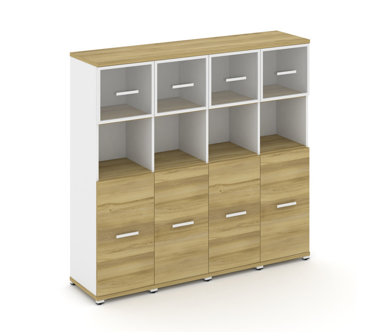 Concept Шкаф 4 узкие секции, 4 ниши CN.STU-445 RPW W Дуб Винченцо/Белый Бриллиант/Металл Белый/Прозр