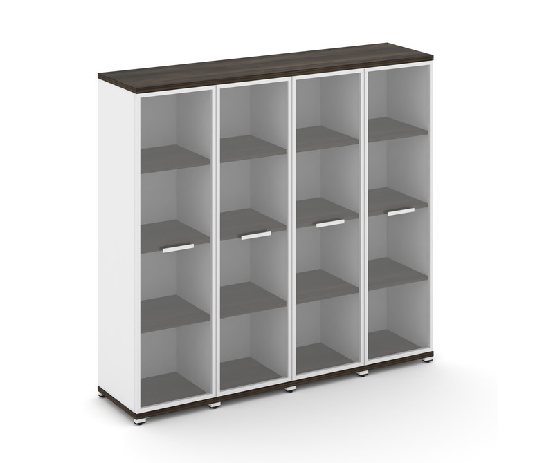 Concept Шкаф 4 узкие секции, 4 ниши CN.STU-446 RPW W Дуб Мали/Белый Бриллиант/Металл Белый/Прозрачны