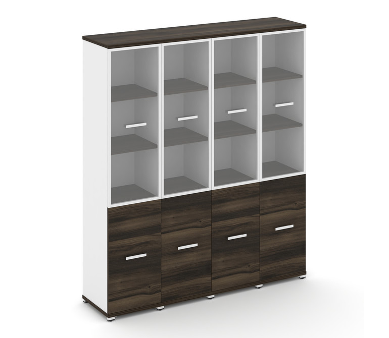 Concept Шкаф 4 узкие секции, 5 ниш CN.STU-542 RPW W Дуб Мали/Белый Бриллиант/Металл Белый/Прозрачный