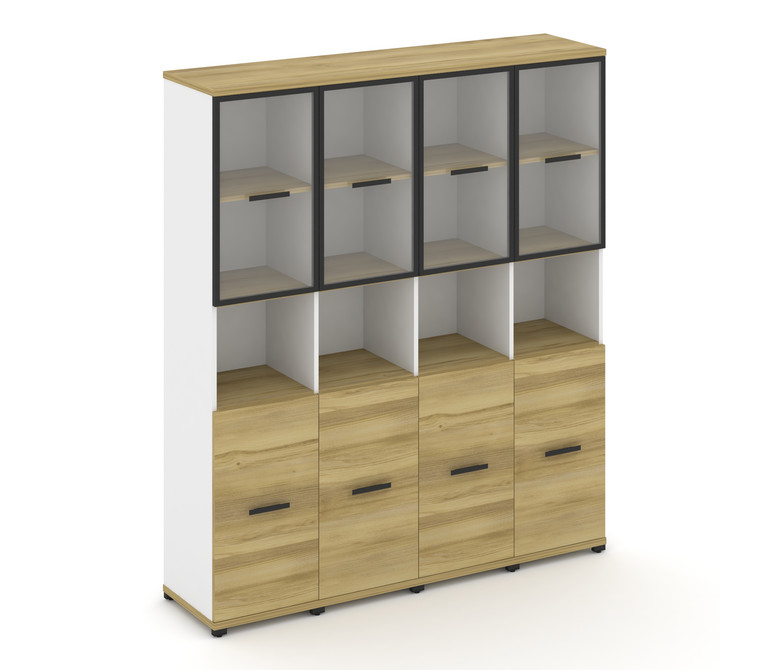 Concept Шкаф 4 узкие секции, 5 ниш CN.STU-543 RPB B Дуб Винченцо/Белый Бриллиант/Металл Черный/Проз