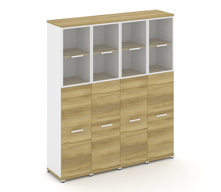 Concept Шкаф 4 узкие секции, 5 ниш CN.STU-545 RPW W Дуб Винченцо/Белый Бриллиант/Металл Белый/Прозра