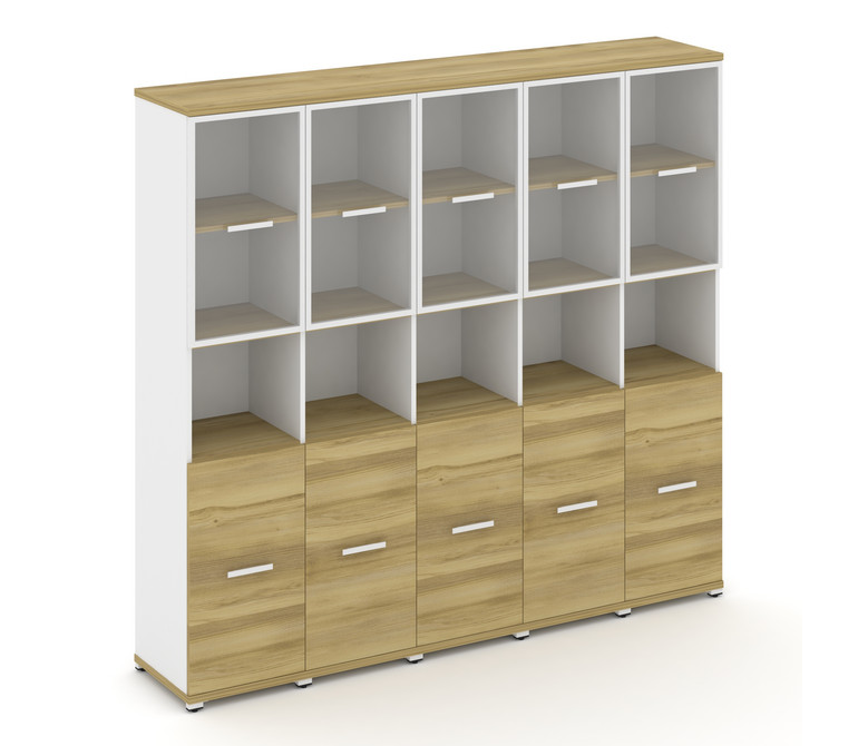 Concept Шкаф 5 узких секции, 5 ниш CN.STU-553 RPW W Дуб Винченцо/Белый Бриллиант/Металл Белый/Прозра