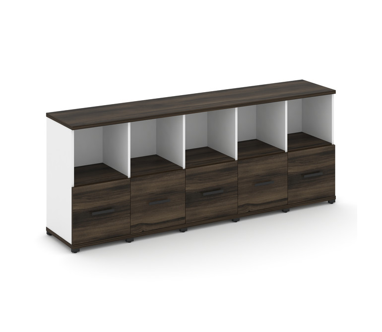 Concept Шкаф 5 узких секций, 2 ниши CN.STU-251 B Дуб Мали/Белый Бриллиант/Металл Черный 2084*420*818