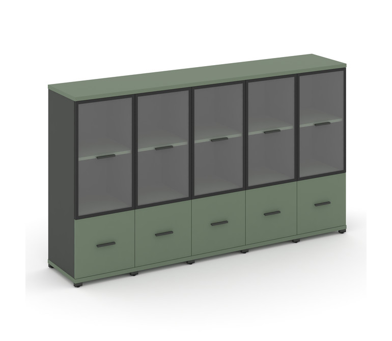 Concept Шкаф 5 узких секций, 3 ниши CN.STU-352 RPB A Кобо/Антрацит/Металл Антрацит/Прозрачный 2084*4