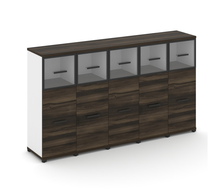 Concept Шкаф 5 узких секций, 3 ниши CN.STU-354 RPB B Дуб Мали/Белый Бриллиант/Металл Черный/Прозрачн
