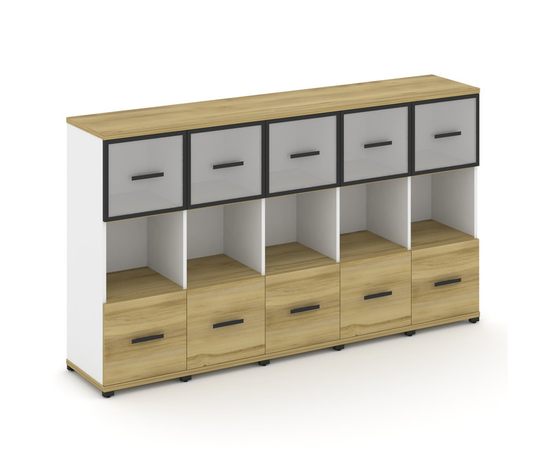Concept Шкаф 5 узких секций, 3 ниши CN.STU-355 RMB B Дуб Винченцо/Белый Бриллиант/Металл Черный/Сати