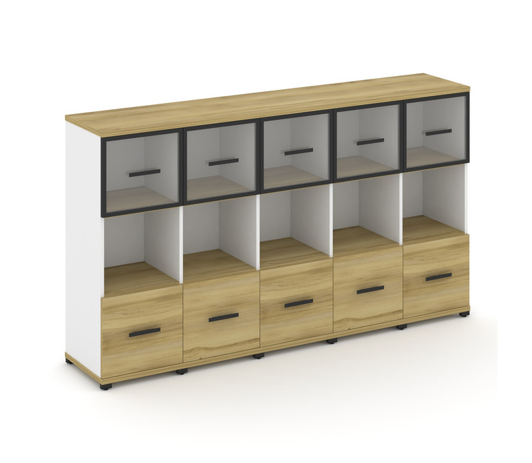 Concept Шкаф 5 узких секций, 3 ниши CN.STU-355 RPB B Дуб Винченцо/Белый Бриллиант/Металл Черный/Проз