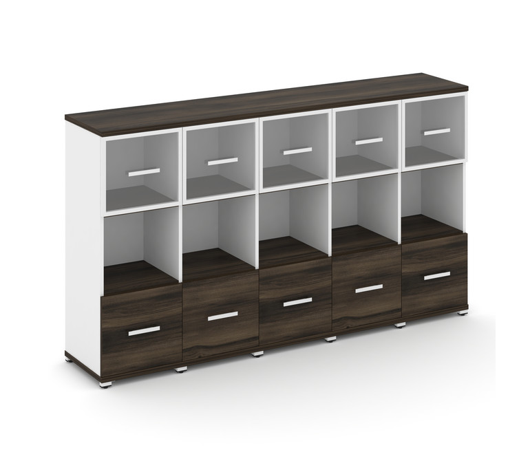 Concept Шкаф 5 узких секций, 3 ниши CN.STU-355 RPW W Дуб Мали/Белый Бриллиант/Металл Белый/Прозрачны
