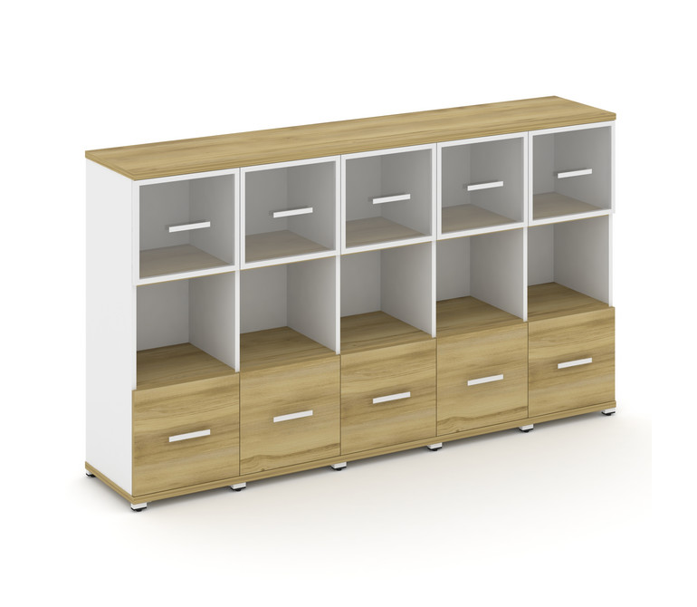 Concept Шкаф 5 узких секций, 3 ниши CN.STU-355 RPW W Дуб Винченцо/Белый Бриллиант/Металл Белый/Прозр