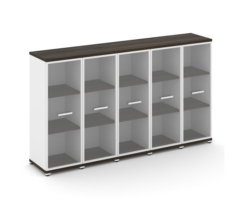 Concept Шкаф 5 узких секций, 3 ниши CN.STU-356 RPW W Дуб Мали/Белый Бриллиант/Металл Белый/Прозрачны