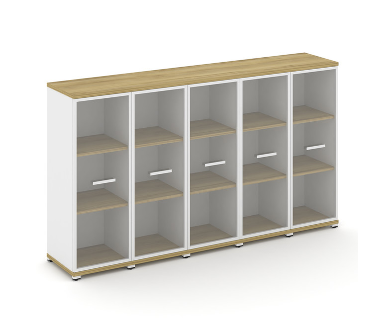 Concept Шкаф 5 узких секций, 3 ниши CN.STU-356 RPW W Дуб Винченцо/Белый Бриллиант/Металл Белый/Прозр