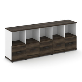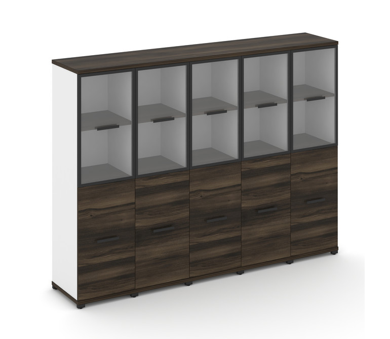 Concept Шкаф 5 узких секций, 4 ниши CN.STU-452 RPB B Дуб Мали/Белый Бриллиант/Металл Черный/Прозрачн