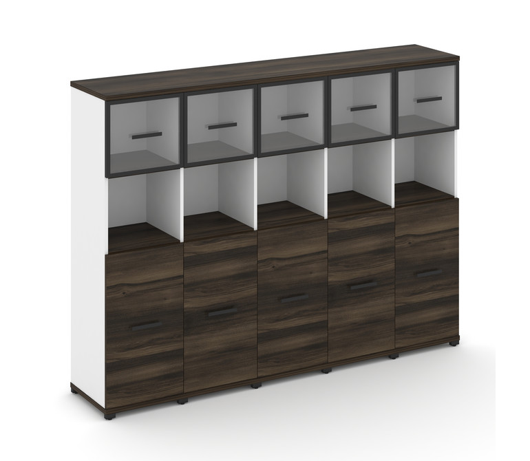 Concept Шкаф 5 узких секций, 4 ниши CN.STU-455 RPB B Дуб Мали/Белый Бриллиант/Металл Черный/Прозрачн