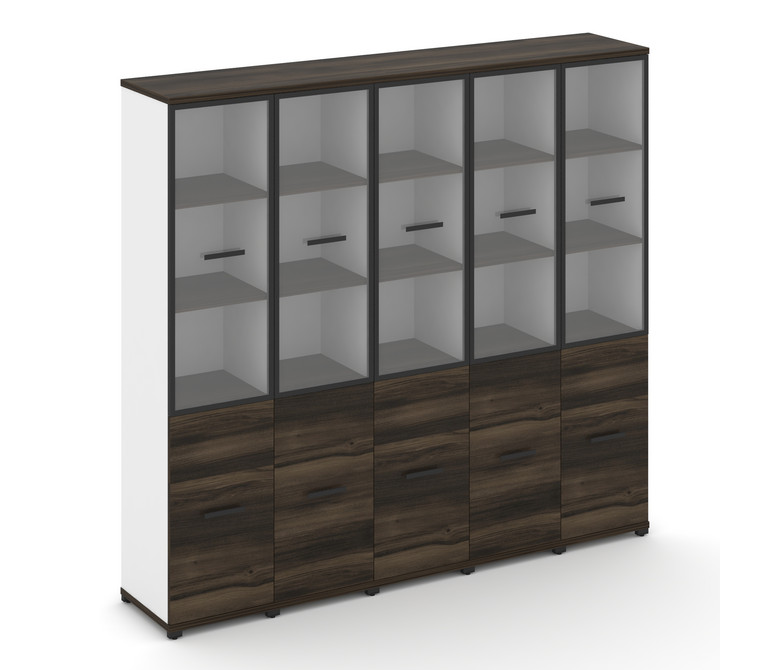 Concept Шкаф 5 узких секций, 5 ниш CN.STU-552 RPB B Дуб Мали/Белый Бриллиант/Металл Черный/Прозрачны