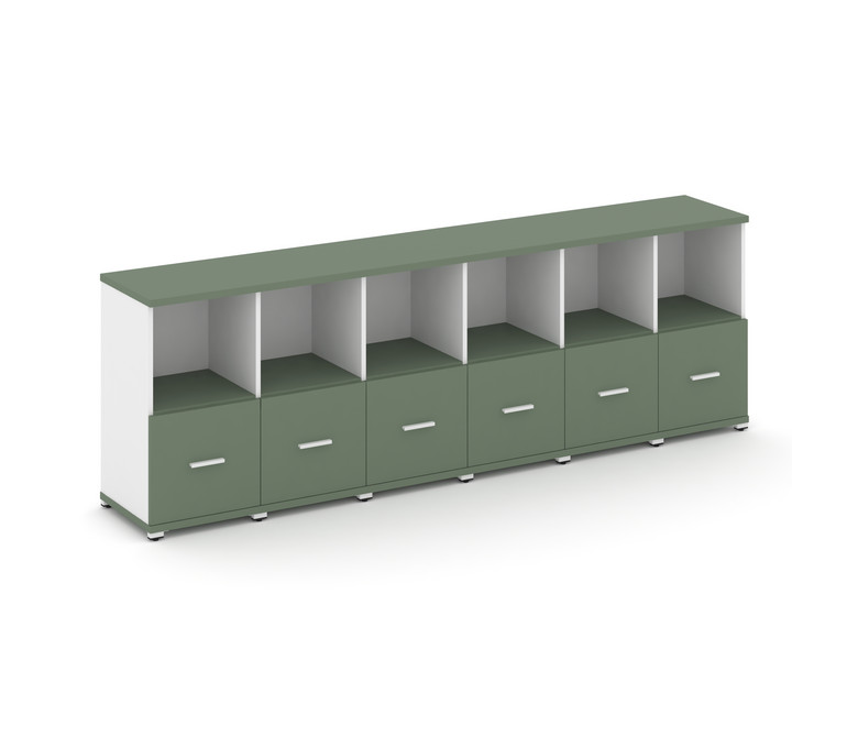 Concept Шкаф 6 узких секций, 2 ниши CN.STU-261 W Кобо/Белый Бриллиант/Металл Белый 2500*420*818