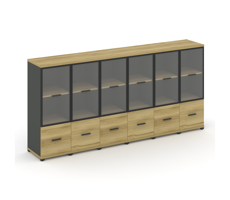 Concept Шкаф 6 узких секций, 3 ниши CN.STU-362 RPB A Дуб Винченцо/Антрацит/Металл Антрацит/Прозрачны