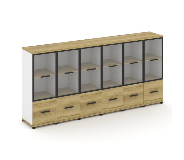 Concept Шкаф 6 узких секций, 3 ниши CN.STU-362 RPB B Дуб Винченцо/Белый Бриллиант/Металл Черный/Проз